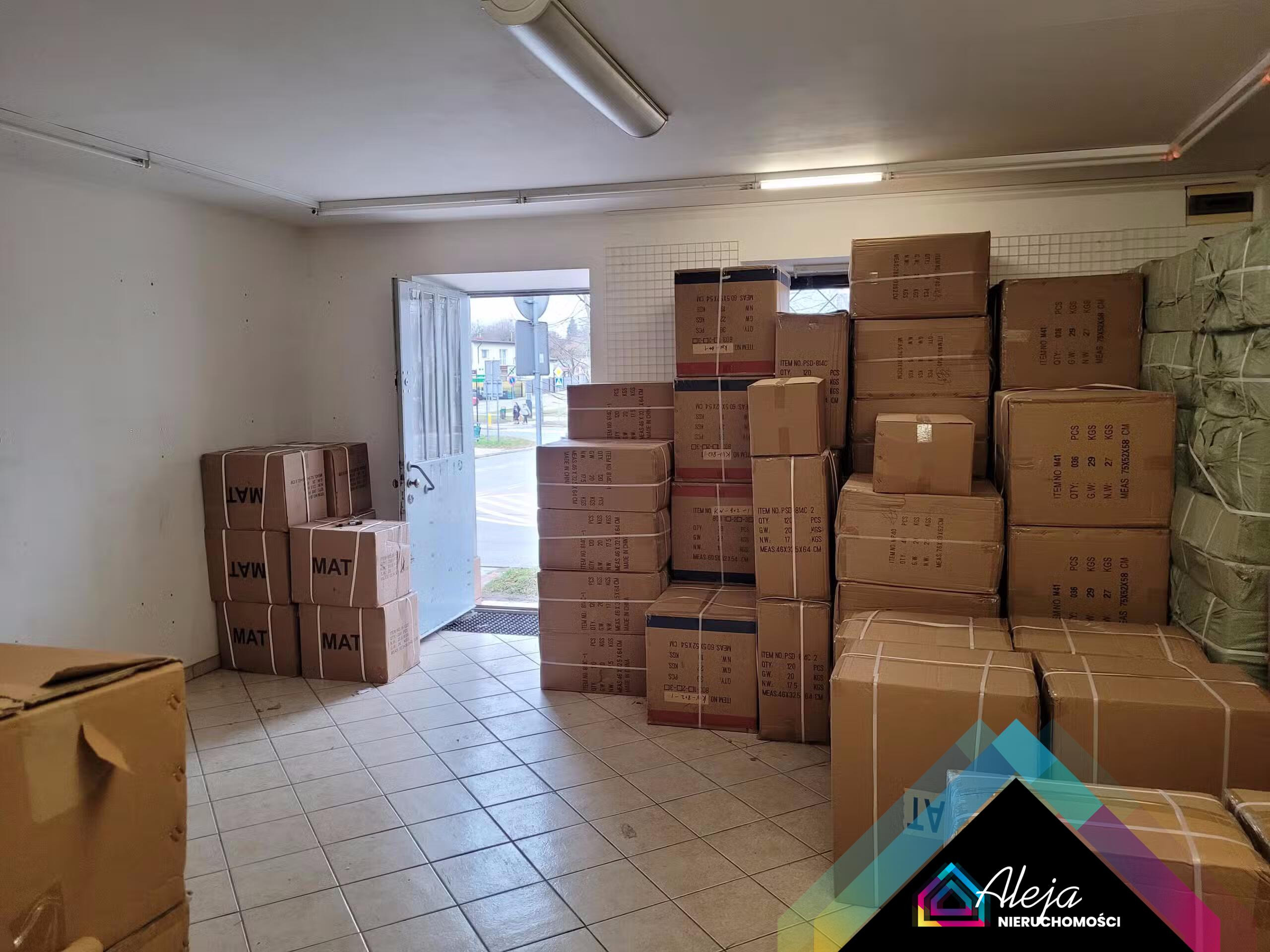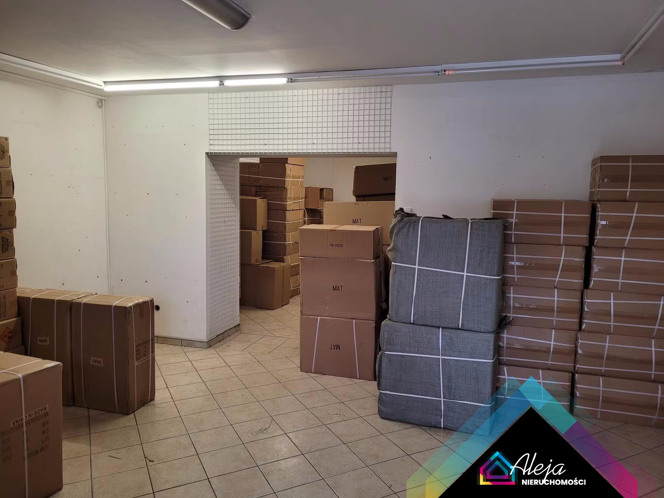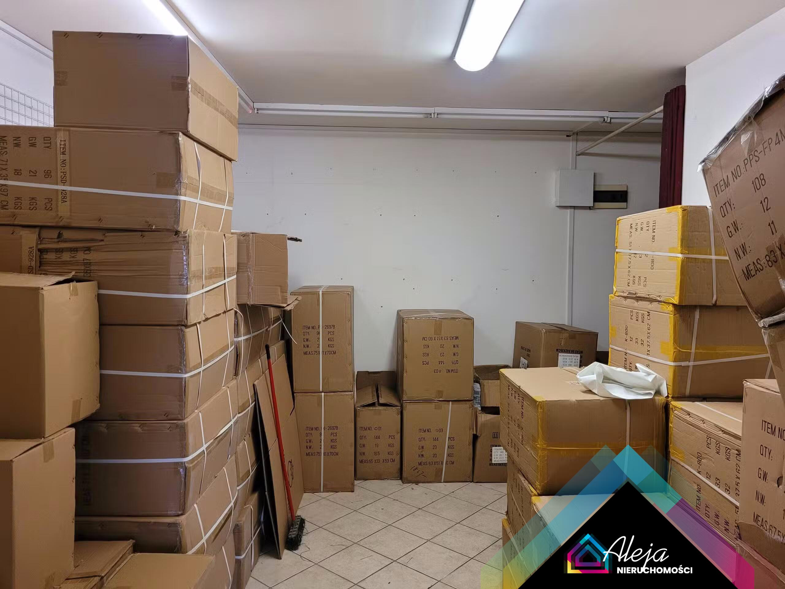 W pomieszczeniu znajduje się duża przestrzeń handlowa oraz zaplecze z toaletą.
