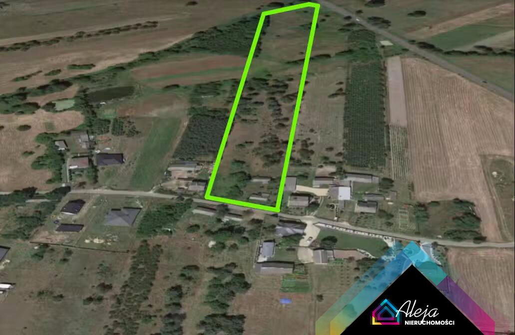Działka składa się z dużej działki 1,73 ha. 2500 m2 o przeznaczeniu pod zabudowę mieszkaniową jednorodzinną i zagrodową z usługami. Na działce usytuowany dom o powierzchni ok 59 m2 w stanie do remontu, plus zabudowanie gospodarcze o pow. 59 m2. Do domu doprowadzony prąd. Przy drodze asfaltowej mamy dostęp wodociągów i internetu. Działka o kształcie prostokąta,teren płaski.