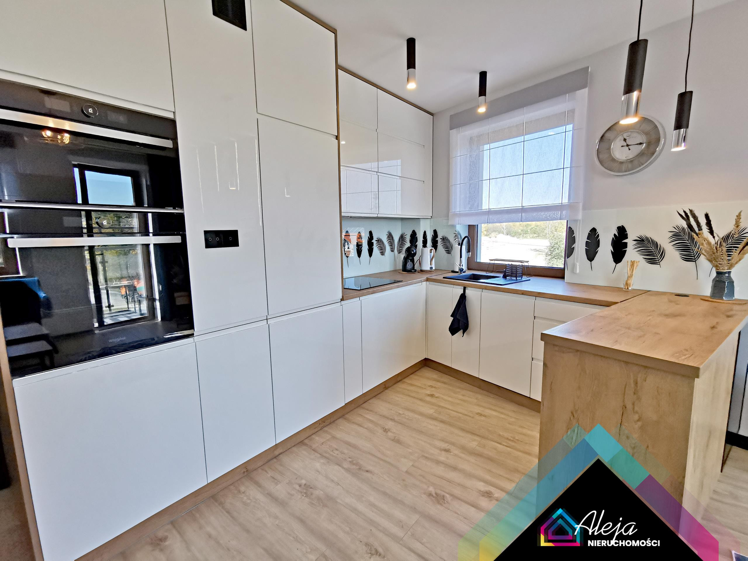 Meble kuchenne w pełni wyposażone w sprzęty małego i dużego Agd( zmywarka,lodówka,piekarnik,płyta,okap,czajnik,ekspres do kawy) oraz sztućce,talerze,garnki ,szklanki,kieliszki itp..