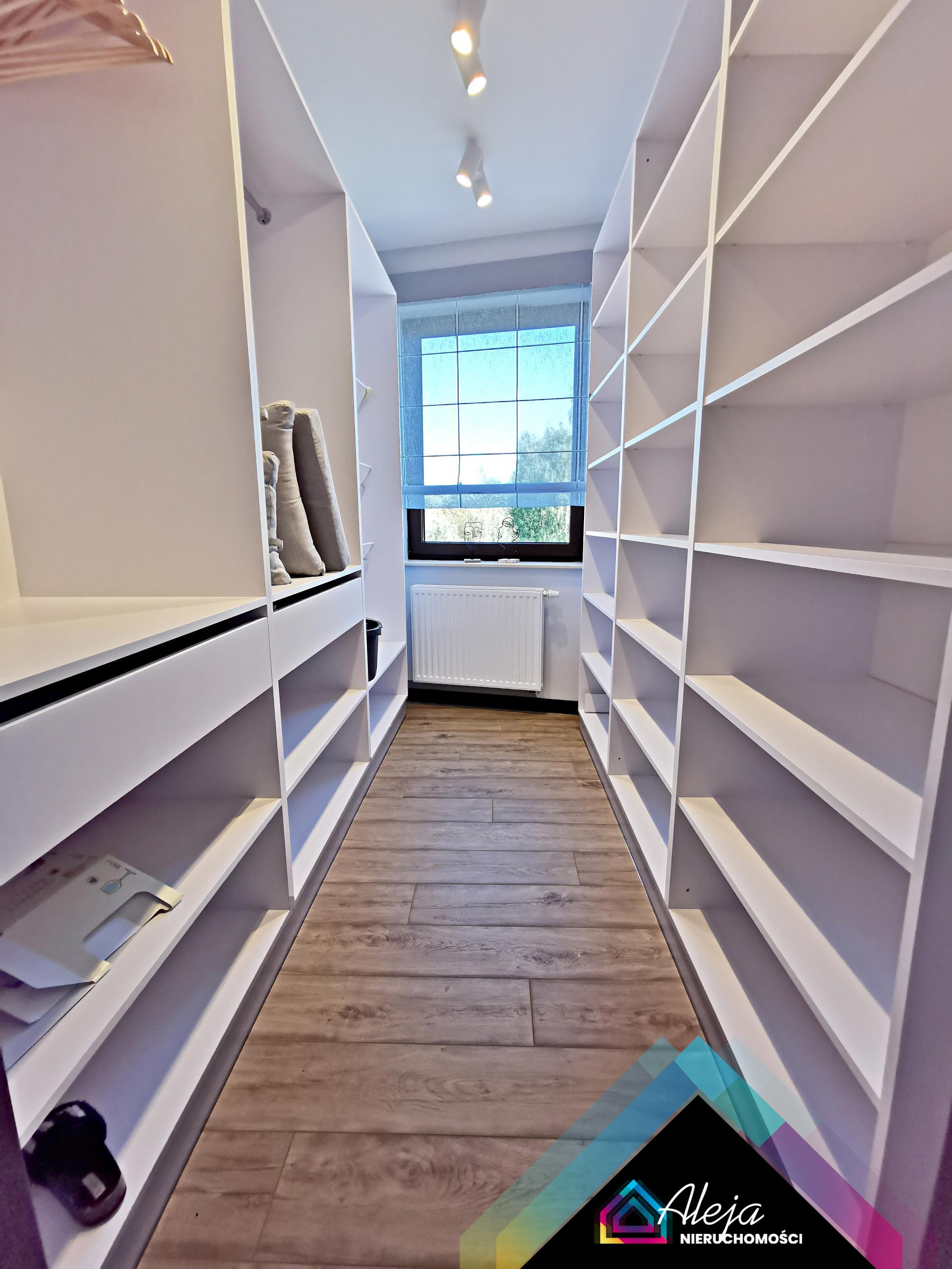 Garderoba zorganizowana w półki,drążki do wieszania..tutaj pozostawiona do dyspozycji najemcy zostaje suszarka czy poduchy do kompletu tarasowego.