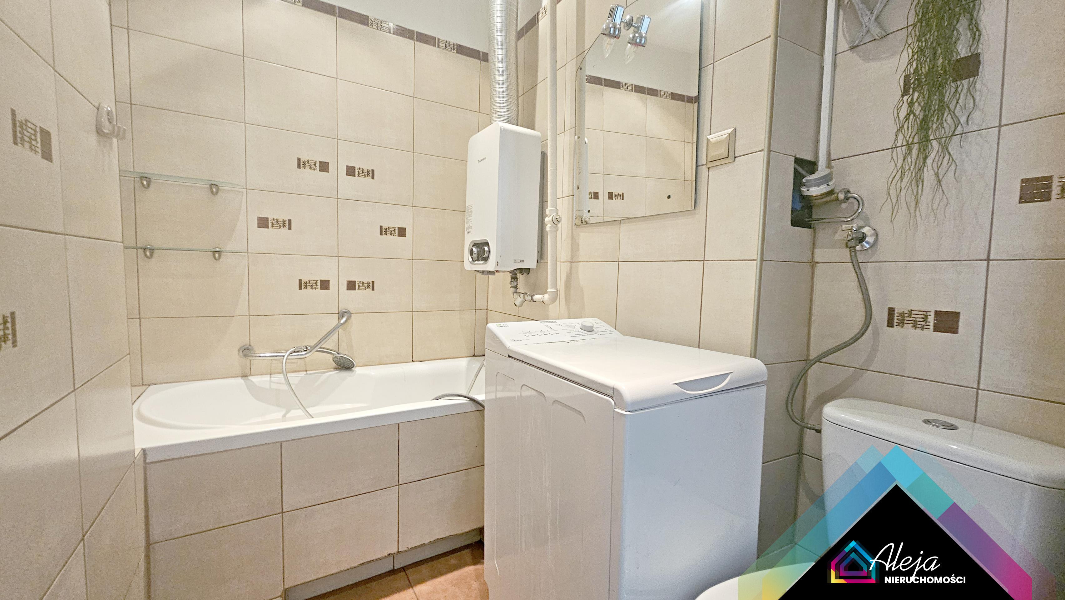 Mieszkanie bardzo widne z oryginalnym układem pomieszczeń.W przedpokoju miejsce na szafę,kuchnia niewielka ale pomieści wszystko co w kuchni być powinno,łazienka z opcją wanny wykończona płytkami nowego typu.Pokoje przejściowy z głęboką szeroką wnęką a na końcu mniejszy pokój z balkonem.