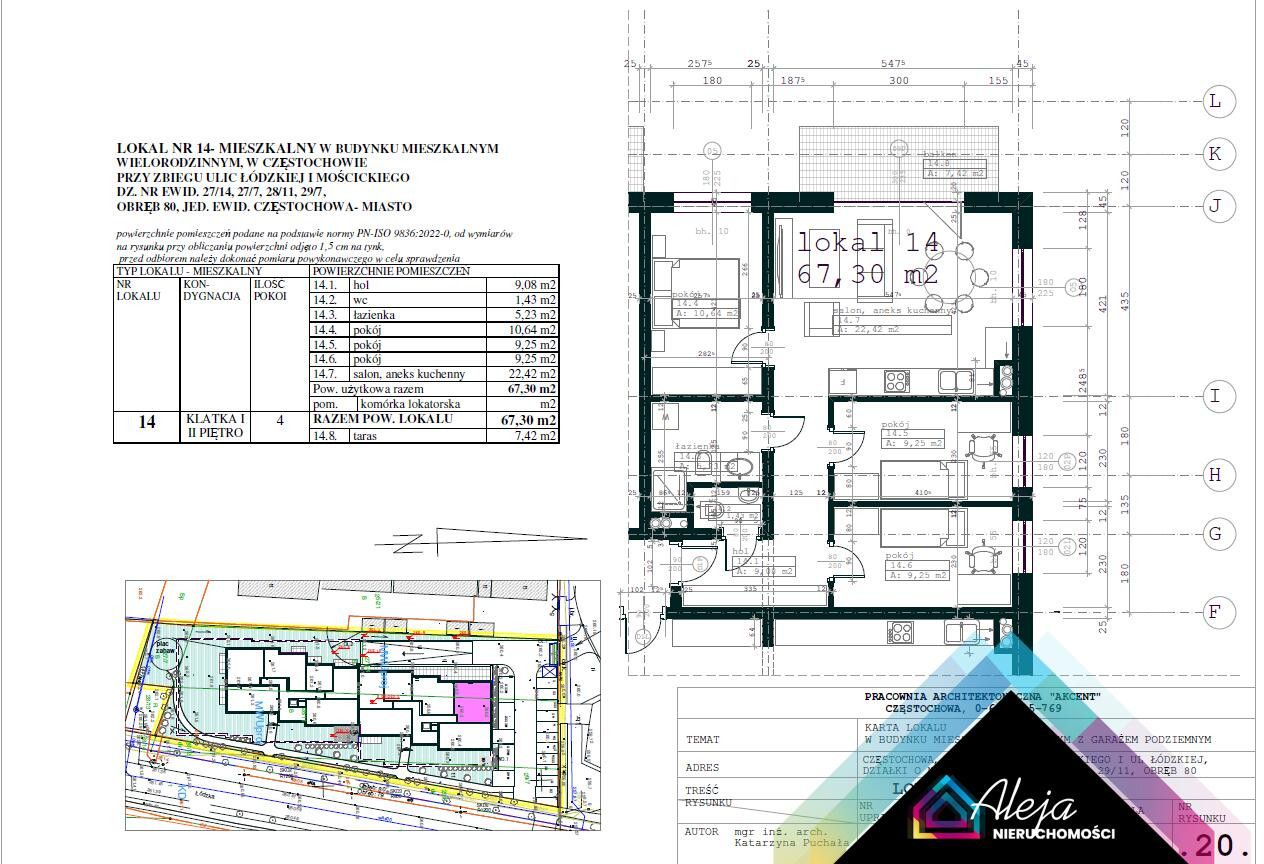 3-pokojowe mieszkanie o powierzchni 67,30 m², położone na 2 piętrze.