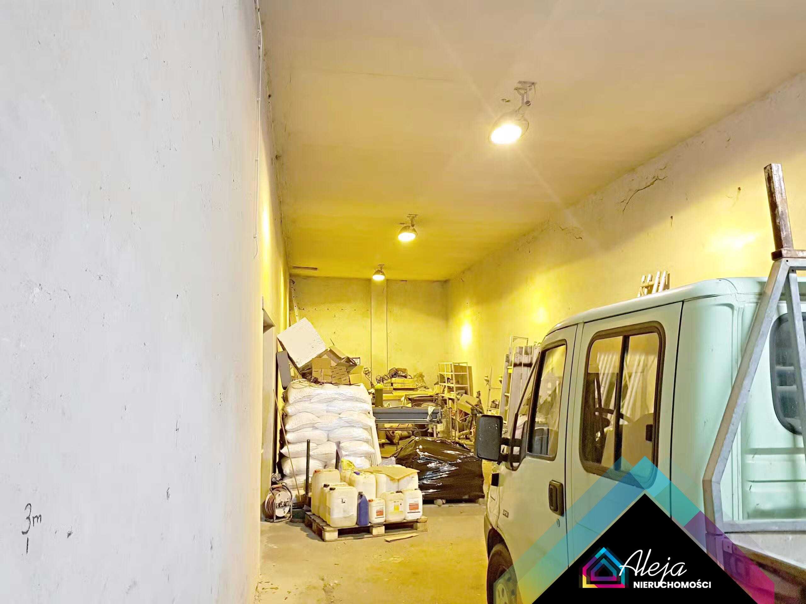 Część hali z kanałami najazdowymi jest na chwilę obecną wynajmowana i jest możliwość pozostawienia najemcy lub uzyskania kolejnej przestrzeni magazynowej.