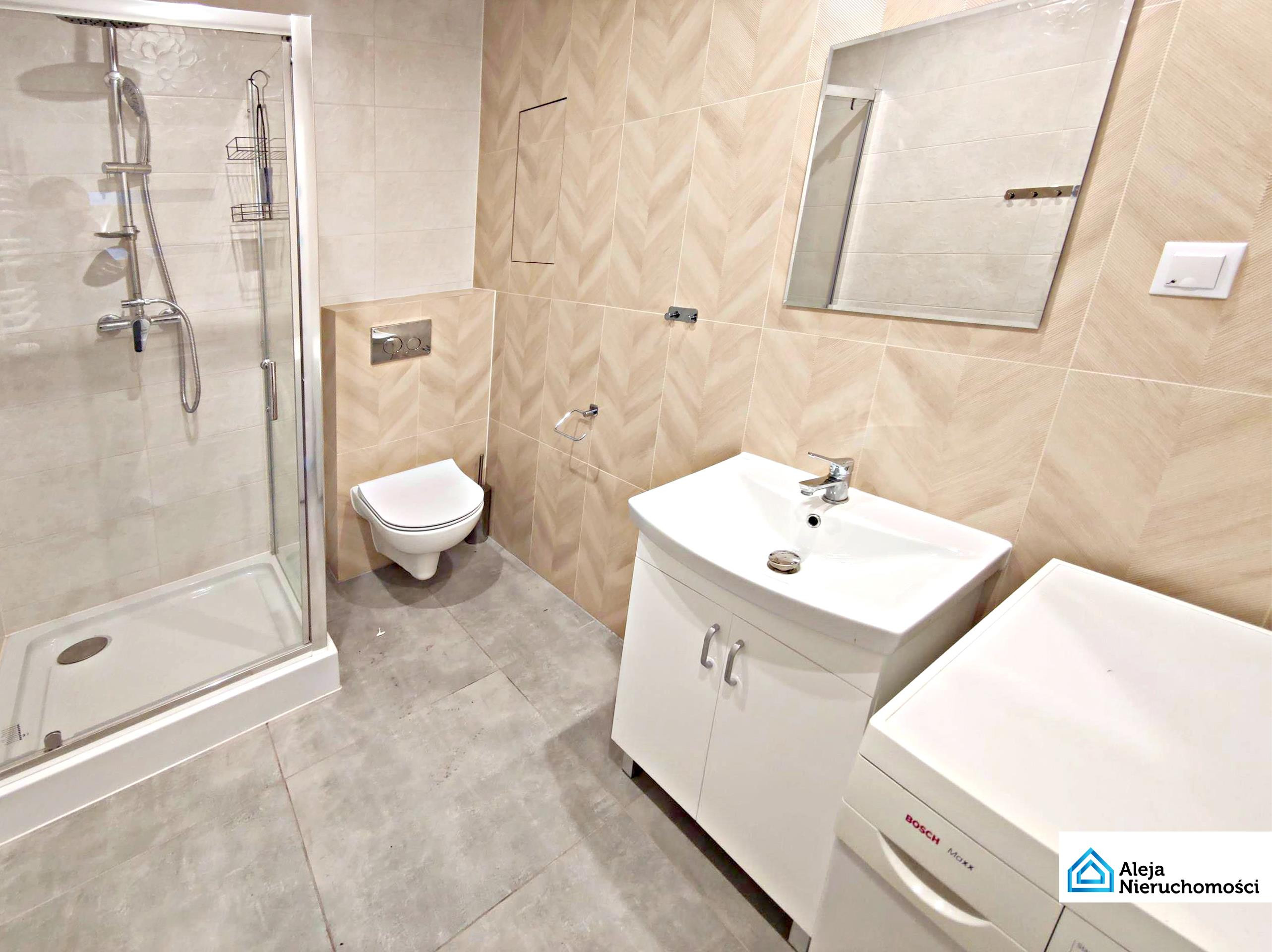Lokal składa się z 2 osobnych pokoi ( oprócz tego aneks kuchenny z salonem),łazienki z wc i korytarzem. Dodatkowo do lokalu przynależy schowek. Wszystko nowoczesne,świeże i pachnące. Mieszkanie wyposażone w bardzo dobrej jakości sprzęty agd(płyta,piekarnik,okap,lodówka,zmywarka),w nową sofę rozkładaną,szafkę rtv,szafę w przedpokoju,łóżko małżeńskie z materacem i szafeczki oraz szafa w sypialni.W łazience szeroka kabina prysznicowa,meble łazienkowe,lustra.